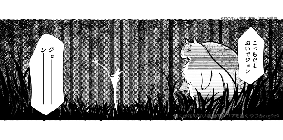 「いいねされた数だけ描く予定のない漫画の一コマを描く」というタグで描いた一コマが増えていくページです
